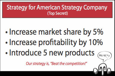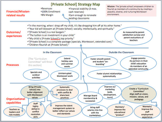 You cannot map an inadequate strategy—like this one—which is why we like the strategy mapping tool. Strategy mapping forces strategy discipline, telling the story of what causes what.